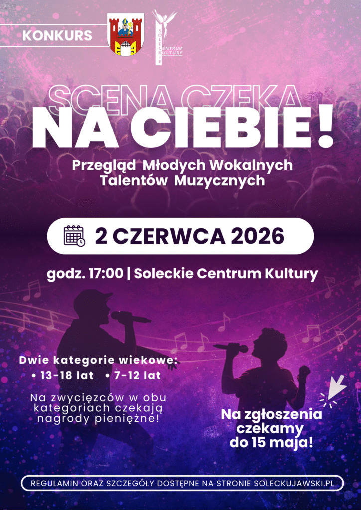 Rusza kolejna edycja konkursu „Przegląd Młodych Wokalnych Talentów Muzycznych”, skierowanego do uzdolnionych muzycznie mieszkańców Solca Kujawskiego. Wydarzenie ma na celu wyłonienie młodych talentów, promocję działalności artystycznej oraz stworzenie przestrzeni do prezentacji wokalnych umiejętności.